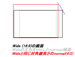 みなさんご存じだと思われるが、画面のサイズの○○インチというのは画面の対角線の長さで定義される。だとすると、同じインチサイズでも、ワイド画面の方が、ノーマル画面よりも縦が短くなるのである。というのは少し前のワイド画面のテレビのCMなんかでも言ってたことでもある。
