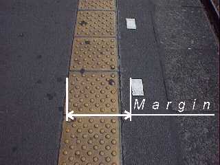 点字ブロックというのはいくらかの幅を持っている。通常のサイズの大人なら、足をそろえて「気をつけ」したら、ちゃんと一人くらいは収まる程度の広さはあるのではなかろうか。だとすると、点字ブロックの観点からは黄色い線の「内側」=「点字ブロックの上」ということになるのである。