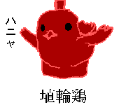 はたして、埴輪鶏とはどのようなものかは定かではないが、おそらくどこぞの民芸品みたいなもので、素焼きで、目は穴になっていて「ハニャ〜?