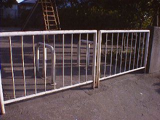 公園の出口っぽいんですが、門ではなく完全に固定されて柵になってます。いわゆる無用門に近いようすです。