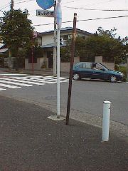 右側の背の低い棒はおそらく、ガードレールの支柱(レールなし)だと思われるが、彼は彼でこの角を守るぞとふんばっているように見える。