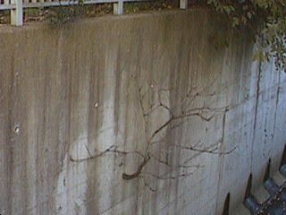 コンクリの壁にとってつけたように生える木。