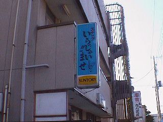 「いらっしゃいませ」とご挨拶をそのまま店名にしてしまったらしい、このお店。ト音記号も書いてあるから、たぶん、飲んで唄える明るいお店なんだろう。