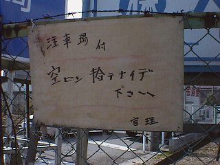 です。注射は痛いですが、注車もなかなか痛いです。液状の車なのかもしれません。「拾テナイデ」とありますが、たぶん、「捨テルナ」と言いたいのでしょう。途中までなんだかカタカナで書いてる割に、最後に「下さい」とあるのも謎です。なにか心境の変化があったのかもしれません。