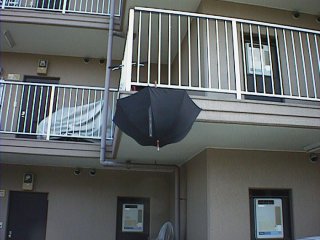 いやぁ、コウモリ傘なだけに、軒先に逆さにぶら下がって休んでるようです。