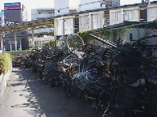 あまりのひどさに、見かねた管理人はついに、フェンス沿いに積み上げた自転車をひもで縛りつける行為に出た。