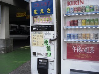 牛乳パックなんかの自販機の流用なんだろうか。取り出し口横に「ストロー」とある。それとも、魚つりの釣人たちは、ストローでなにか仕込むのであろうか。