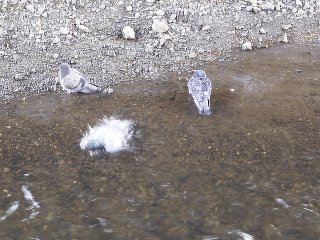 さて、水しぶきが上がっているのは、鳩の水浴びです。l