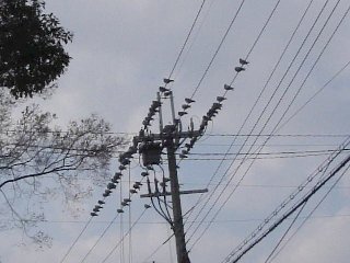 公園のそばの電線の上。